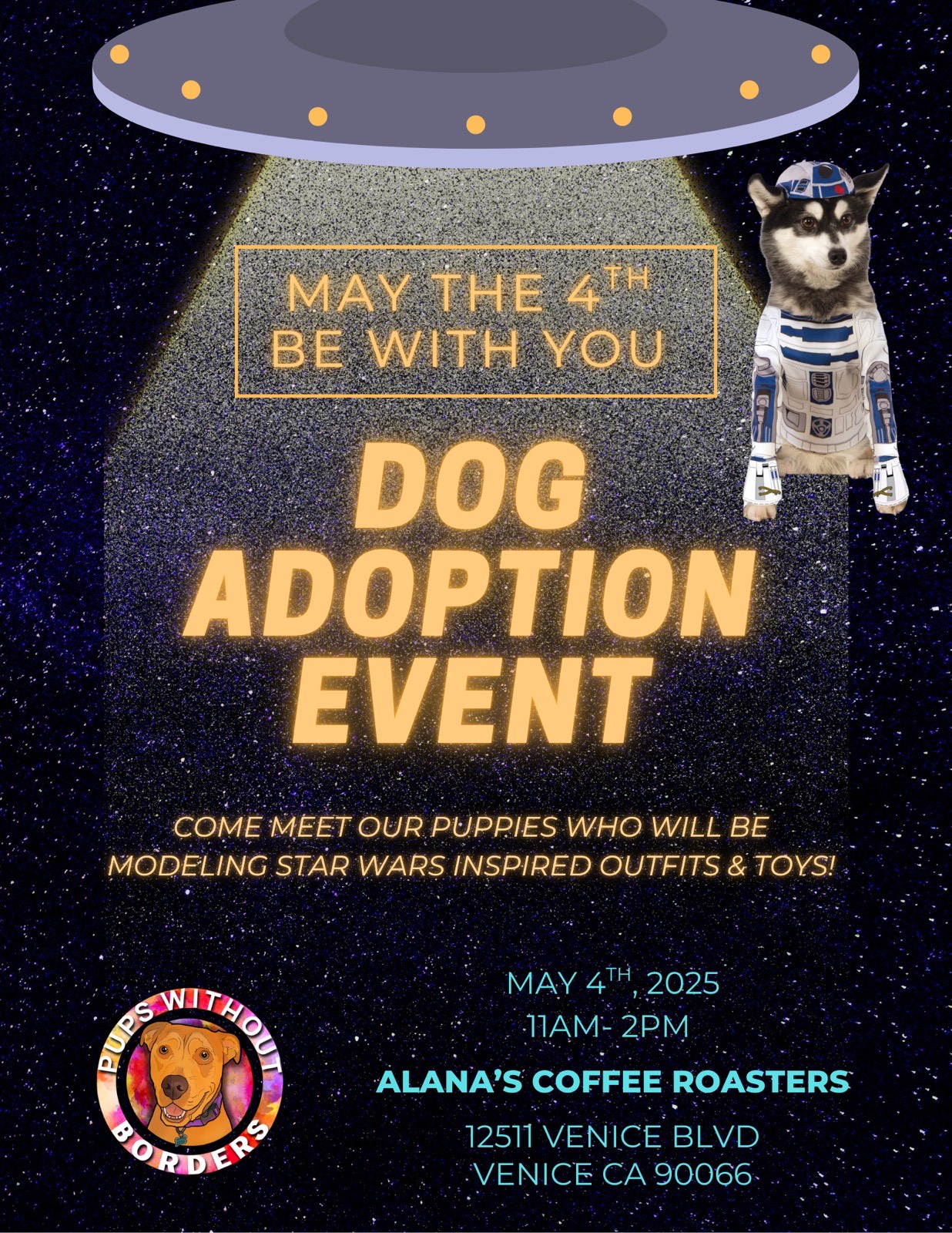We all know that coffee is essential when it comes to starting the day…but you know what’s even better – puppies and Star Wars!!! Join us in a galaxy not too far way for a sci-fi adoption event extravaganza. With a medium roast and four legged friend, the force will definitely be with you.
