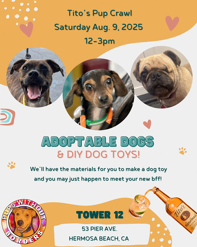 Get ready to wag, wiggle, and walk for a cause at Tito’s Pup Crawl! 🐾 Sip on delicious Tito’s cocktails as you stroll from stop to stop, then get crafty at our make-your-own dog toy station—your pup will thank you! Best of all, you’ll meet adorable, tail-wagging dogs looking for their forever homes. Whether you’re here for the drinks, the DIY fun, or the puppy snuggles, this is one crawl you’ll want to fetch your friends for!